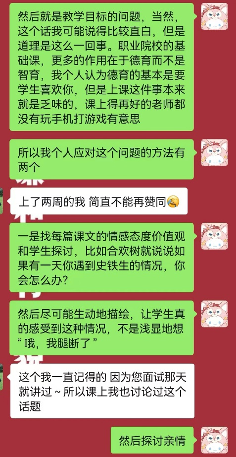 于疫情防控,我院实行线上授课,教研活动及对新老师的帮助指导工作也转为线上开展。由于新老师经验不足,而且是初次采用线上教学的形式进行授课,在具体上课过程中难免会遇到一些困难。对此,我部鼓励老师们提出问题,每周线上例会和教研活动时大家商量解决对策,确保线上授课正常、有序进行,保证授课质量。