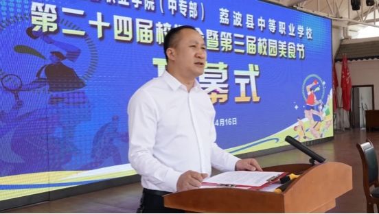 李淘宣布贵州文化旅游职业学院(中专部)荔波县中等职业学校第二十四届运动会暨第三届校园美食节开幕。