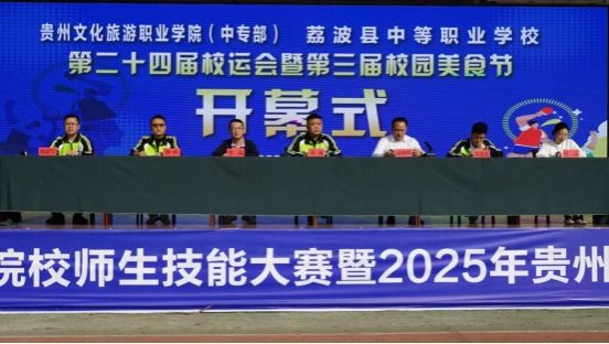 “弘扬体育精神,争做强国青年;品美食盛宴,展职教风采”4月16日,贵州文旅职院(中专部)荔波县中等职业学校第二十四届运动会暨第三届校园美食节隆重开幕。学院中专部负责人李淘、荔波县中等职业学校党支部副书记潘继明参加活动。
