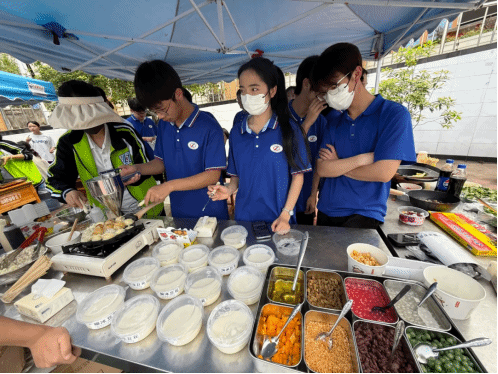 开幕式结束后,校园美食节也随之火热开启。美食节共设十六个摊位,汇聚了来自全国各地的特色美食,让人垂涎欲滴。有香气扑鼻的烧烤、金黄酥脆的炸鸡、软糯香甜的糕点、酸辣可口的粉面,还有各种鲜榨果汁、特色茶饮等饮品。同学们穿梭在各个摊位之间,尽情品尝着美食,享受着舌尖上的盛宴。整个校园弥漫着美食的香气,欢声笑语回荡在每一个角落,洋溢着欢乐、温馨的氛围。