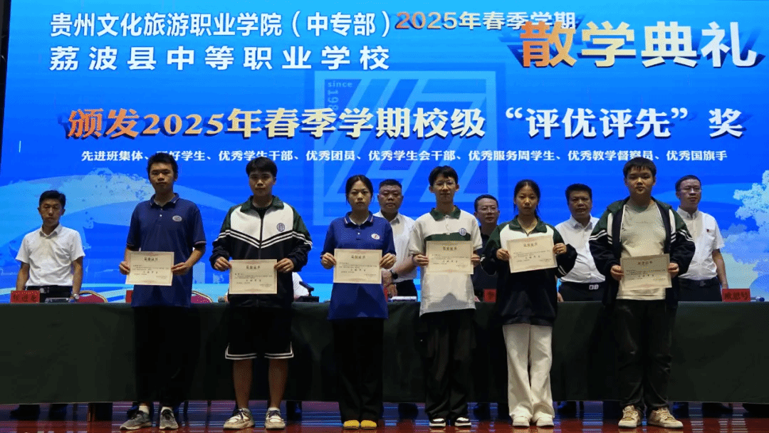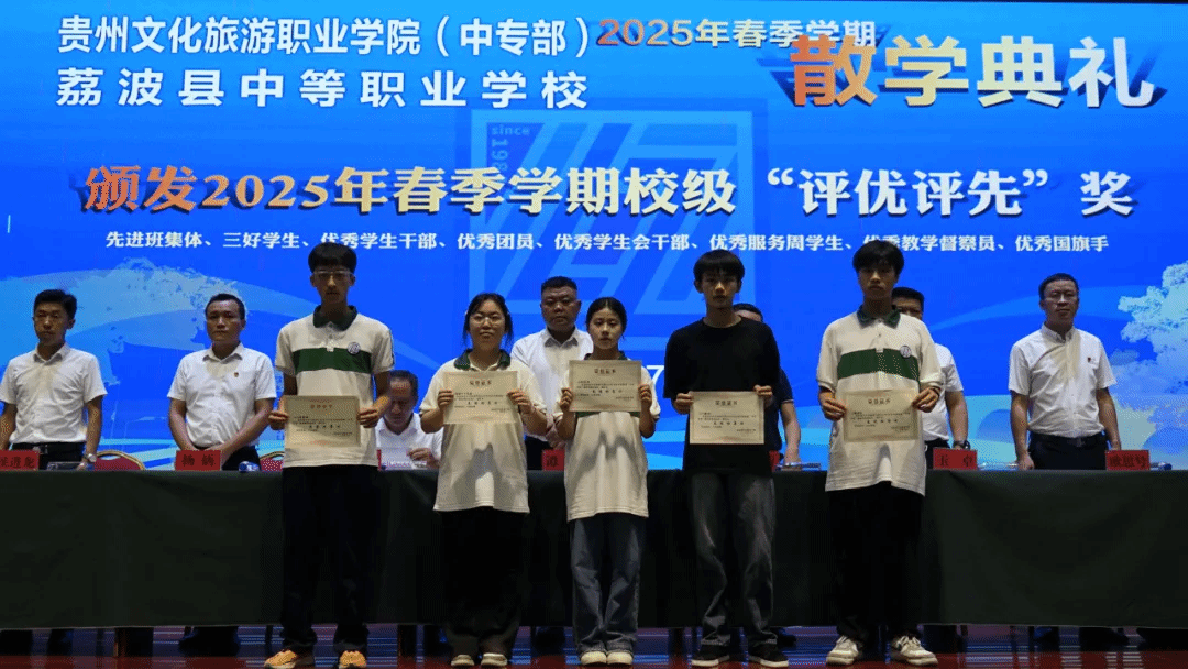 学生代表23计算机1班李文贵表示,短暂的离别是为了更好的相聚。今天的散学,标志着一段旅程的结束,也预示着新征程的开始。让我们带着这个学期的收获与感悟,带着老师们的殷切期望,带着对未来的美好憧憬,度过一个安全、充实、有意义的假期!为表彰先进、树立榜样,学校对本学期在学习、技能、品德等方面表现优异的优秀学生和先进集体进行了表彰,奖项涵盖先进班集体、三好学生、优秀学生干部、优秀团员、优秀学生会干部、优秀服务周学生、优秀教学督察员及优秀国旗手等。