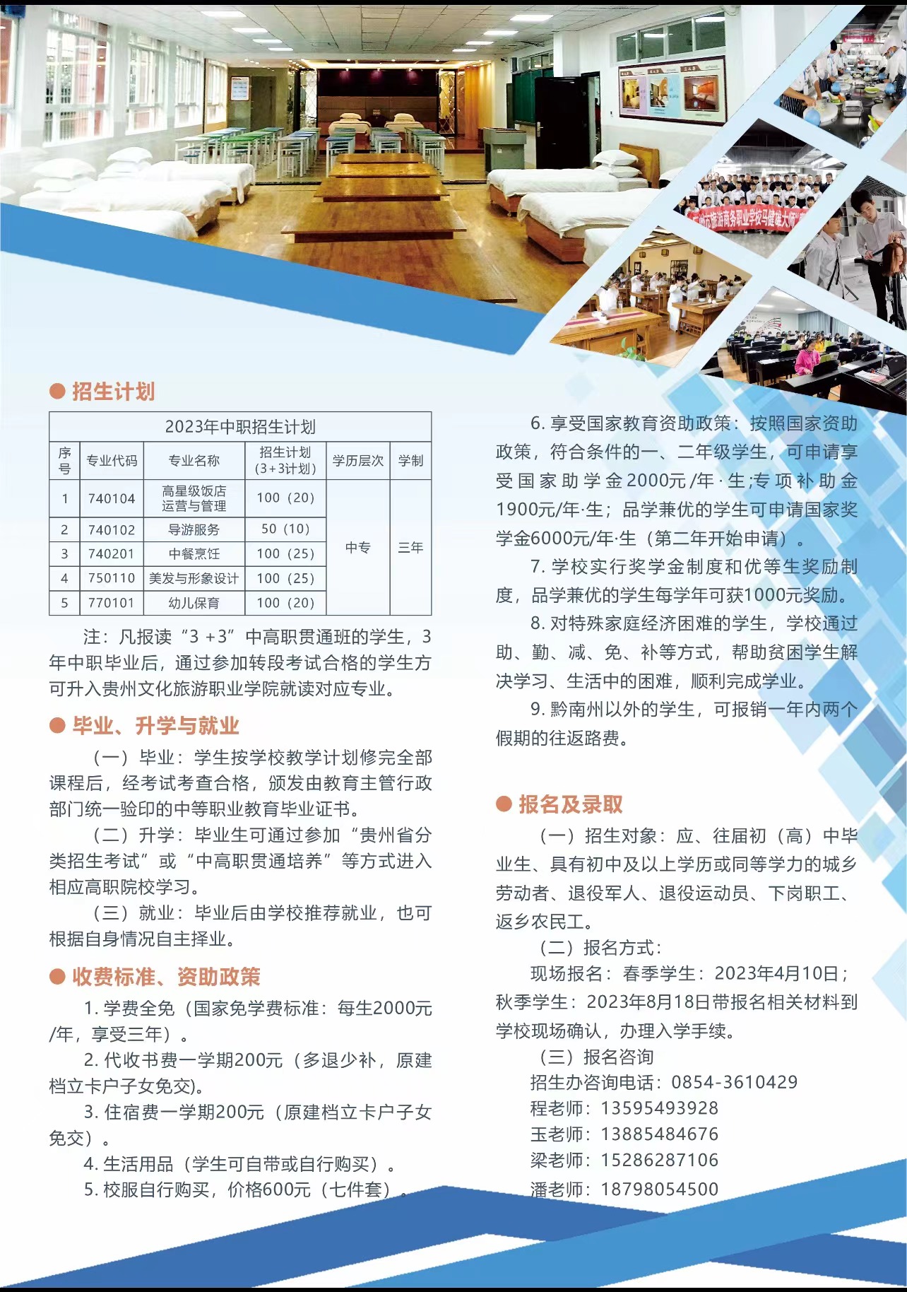2023年贵州文化旅游职业学院(中专部)招生简章