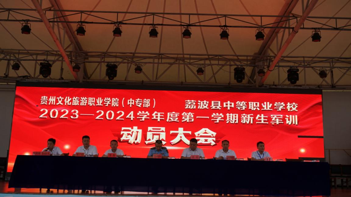 为贯彻落实《中华人民共和国兵役法》《中华人民共和国教育法》和《关于在普通高等学校和高级中学开展学生军事训练工作的意见》的重要教育活动,8月19日,贵州文化旅游职业学院(中专部)、荔波县中等职业学校开展2023—2024学年度第一学期新生军训动员大会。荔波县人武部副部长熊继军,荔波县委教育工委委员、县政府正科长级督学、荔波职校校长谭勇,贵州文化旅游职业学院中专部主任李淘参加此次动员大会,会议由校长助理、政教处主任侯进龙主持。
