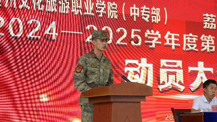 初秋时节,万物竞秀。8月19日,荔波县中等职业学校、贵州文化旅游职业学院中专部2024级新生军训拉开帷幕。县人武部部长李鹏、贵州文化旅游职业学院中专部主任李淘、县职校党支部副书记潘继明、县人武部保障科科长崔江等相关领导参加军训动员大会。