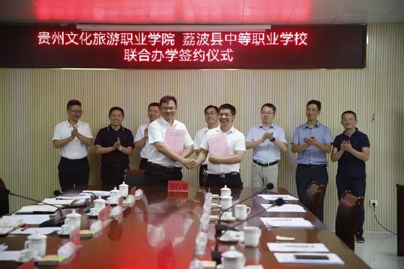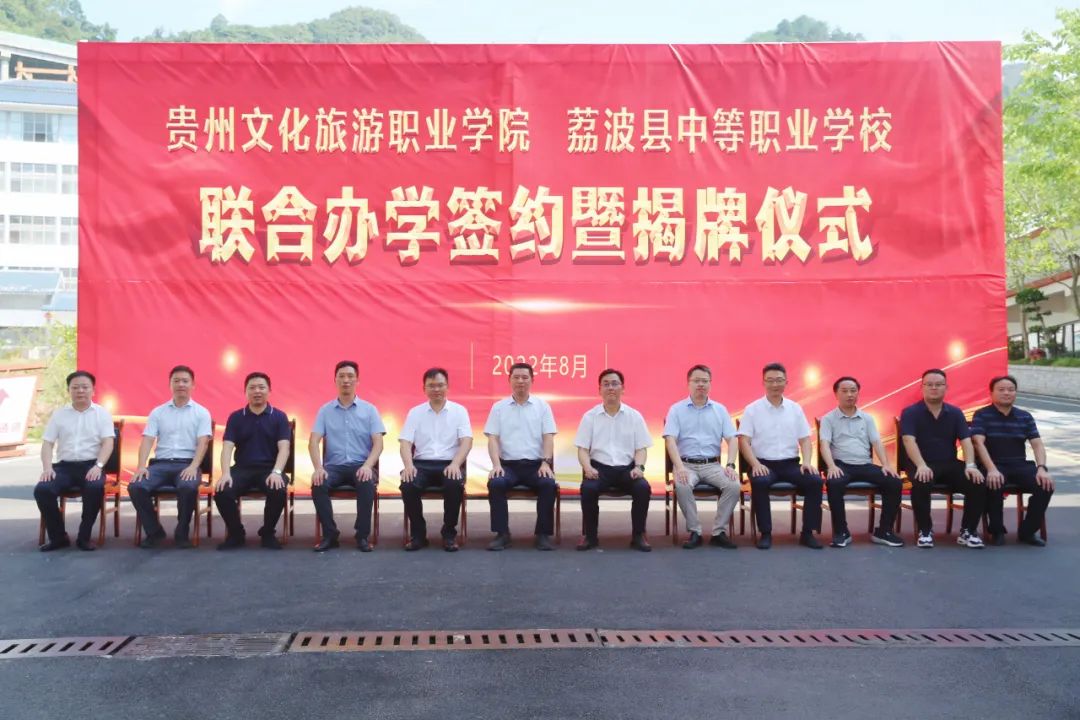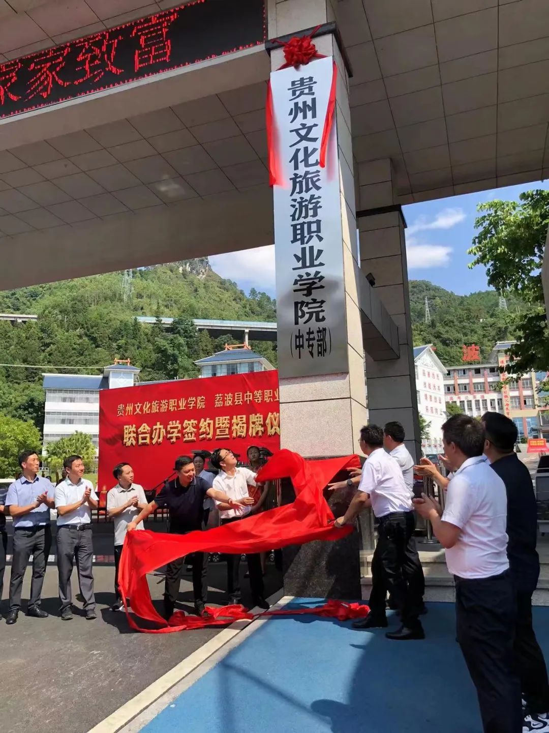8月3日,在贵州省教育厅、贵州省文化和旅游厅的关心与支持下,学院与荔波县中等职业学校举行联合办学签约和揭牌仪式,省文化和旅游厅党组成员、副厅长(正厅级)宋晓路;省教育厅党组成员、副厅长杨天仪;黔南州教育局党委书记、局长黄怡,学院党委书记、院长陆勇昌及荔波县委副书记、县人民政府县长马登宏等相关领导参加活动。会议由马登宏主持,这标志着我院中专部正式落户荔波县中等职业学校。
