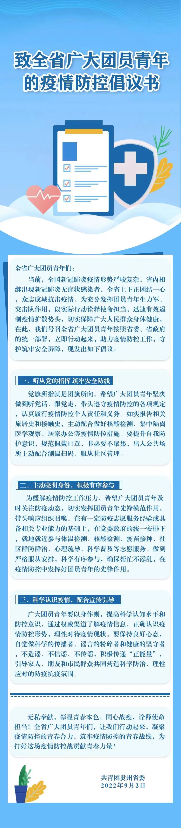 转发共青团贵州省委致全省广大团员青年的疫情防控倡议书